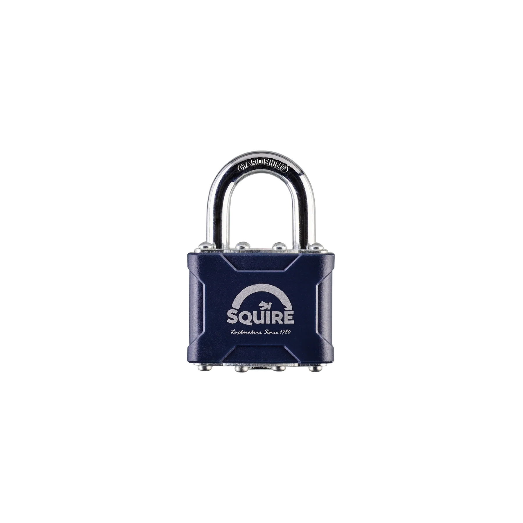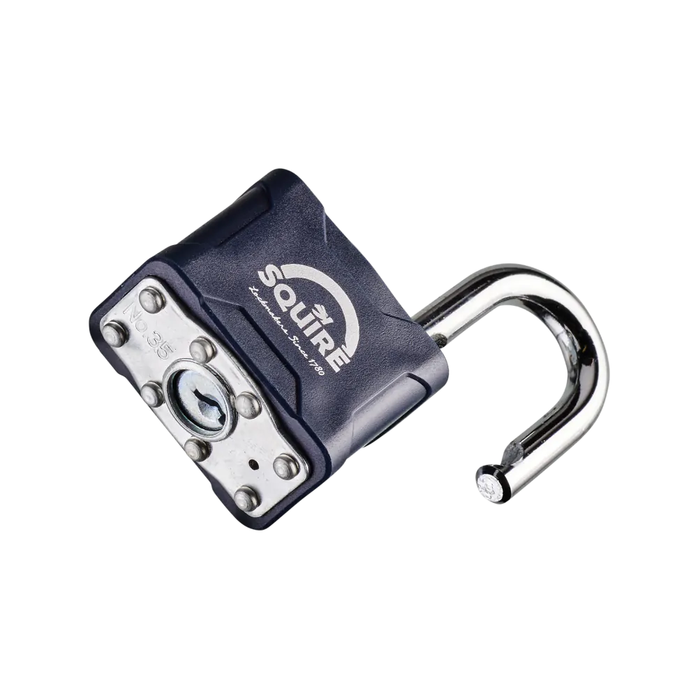 The Squire 35 Padlock is designed for medium-duty security needs. Featuring a hardened steel shackle and a laminated steel body that features an anti-corrosion finish, it provides long-lasting protection for your possessions.